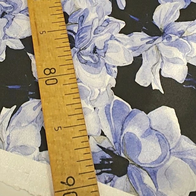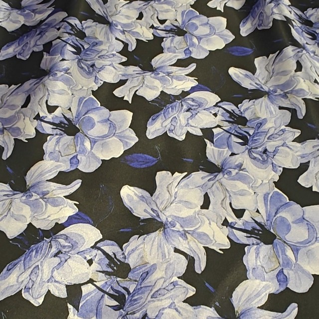 - Атлас с блеском Кристалл с акварельными розами цвета индиго для пошива нарядных платьев