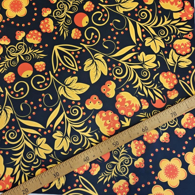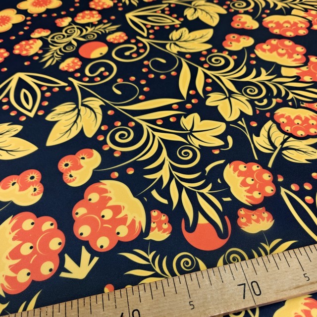 - Органза матовая Виола с узором Хохлома для пошива модных нарядных платьев - детских, выпускных и вечерних.